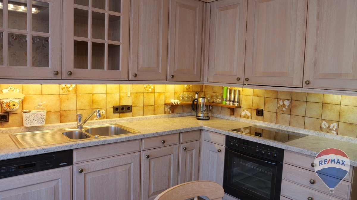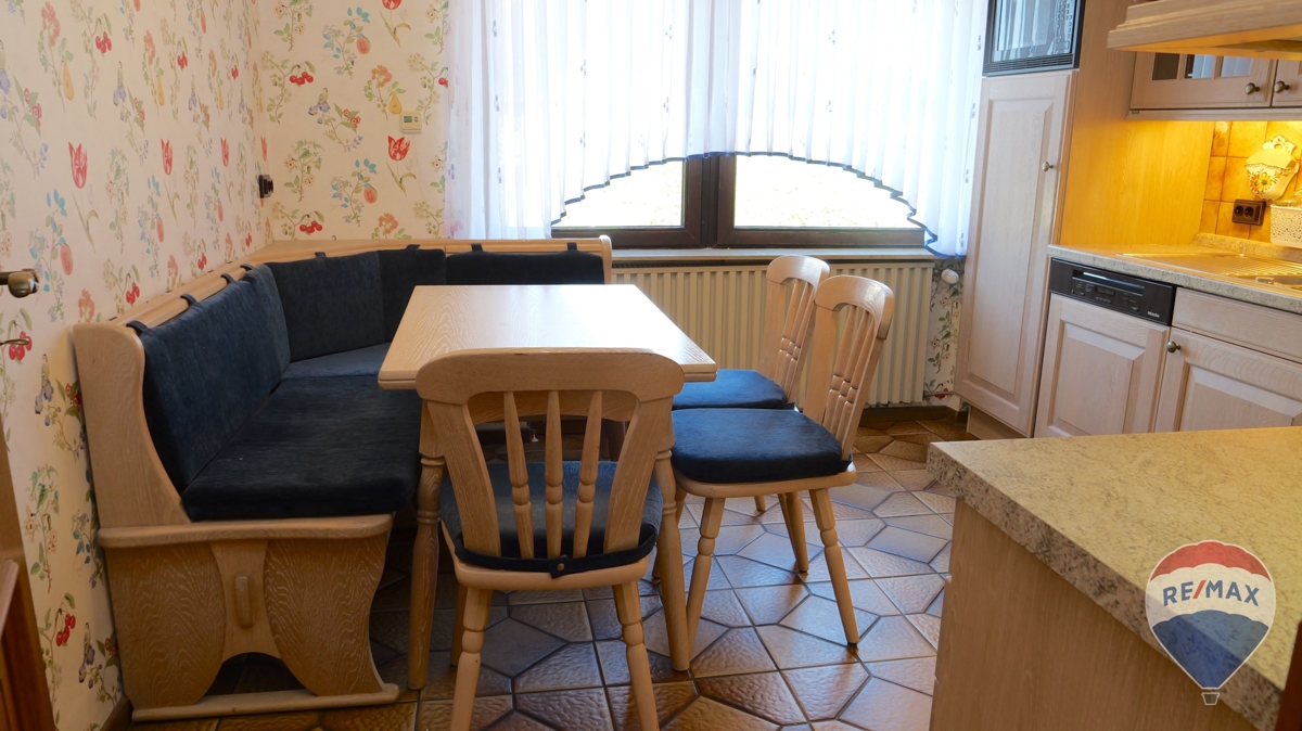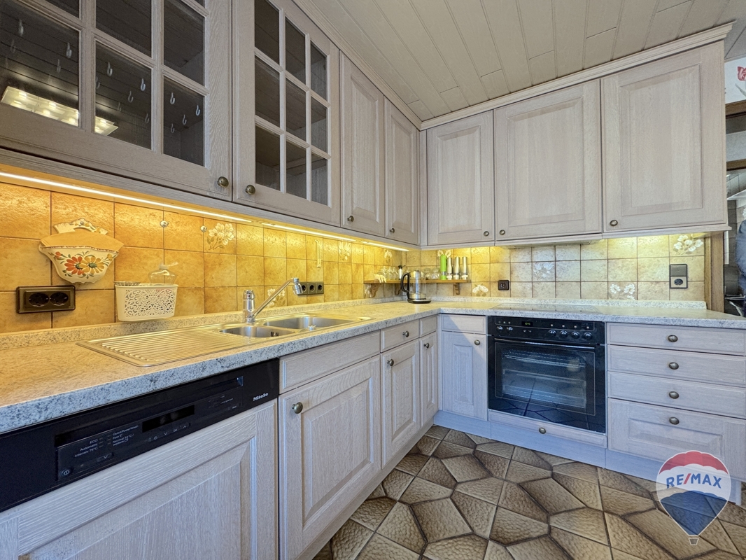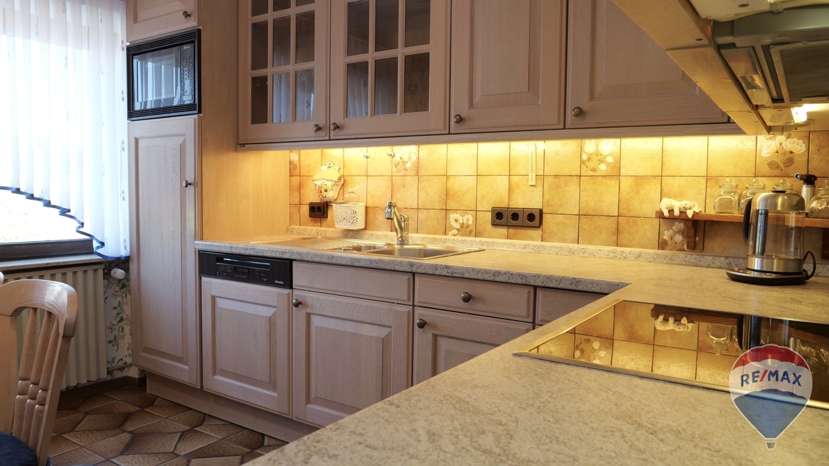Das großzügige Wohn-Esszimmer mit großer Fensterfront sorgt für ein helles, offenes Raumgefühl und bietet direkten Blick in den liebevoll angelegten Garten – ideal, um Freunde zum Grillen einzuladen oder einfach nur zu entspannen. Die Küche befindet sich in einem separaten Raum und ist mit einer funktionalen Einbauküche ausgestattet, die sowohl praktisch als auch stilvoll gestaltet ist.