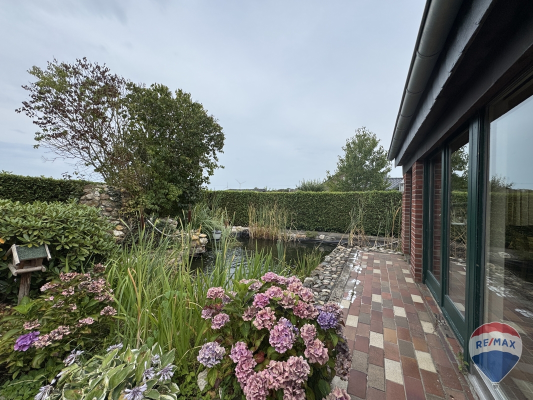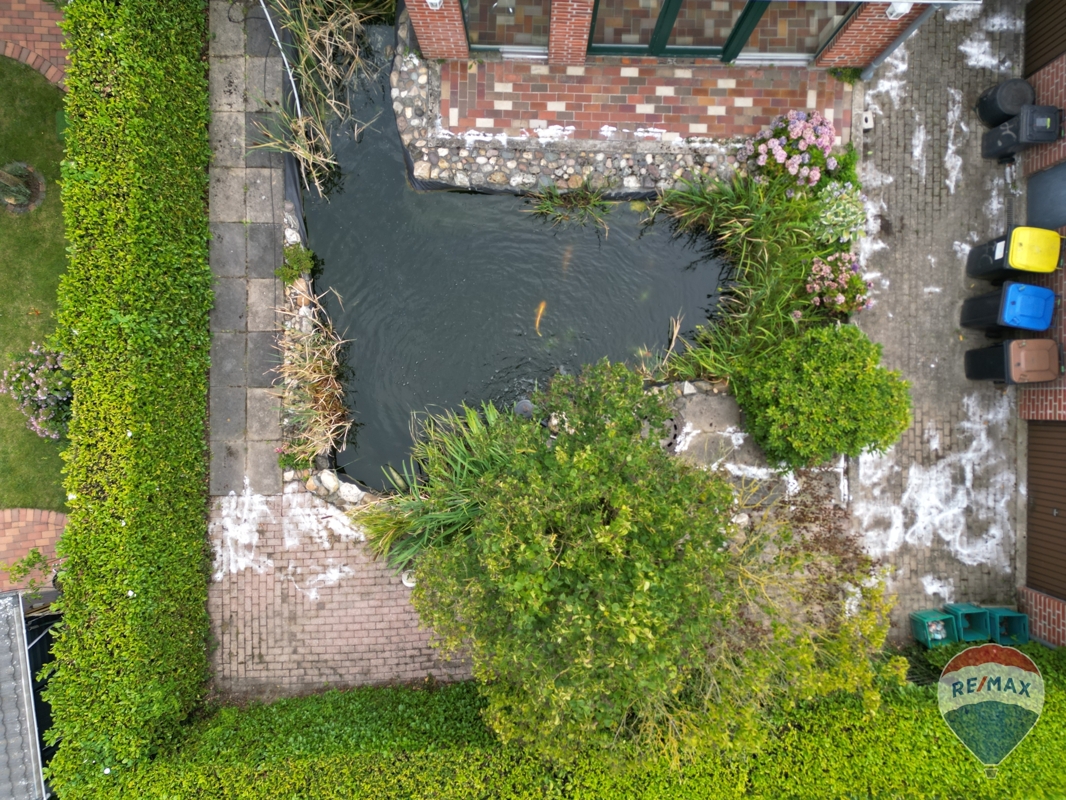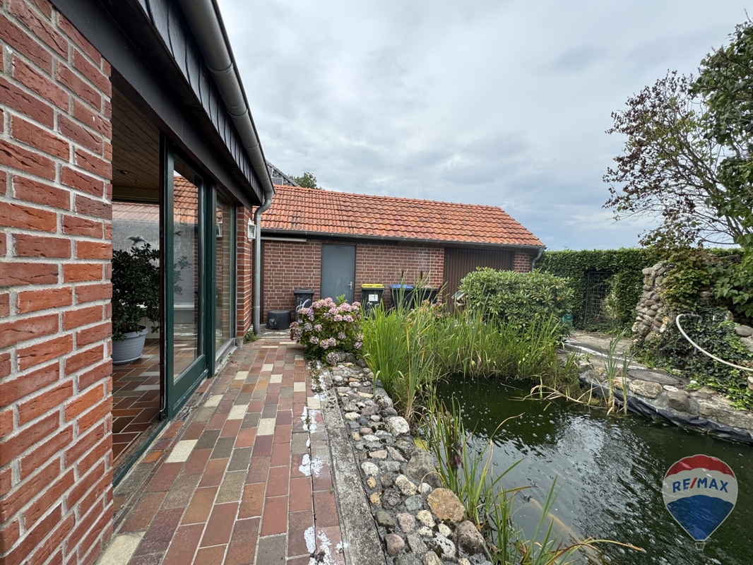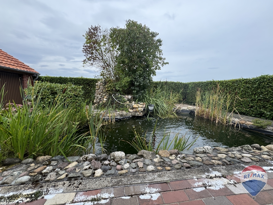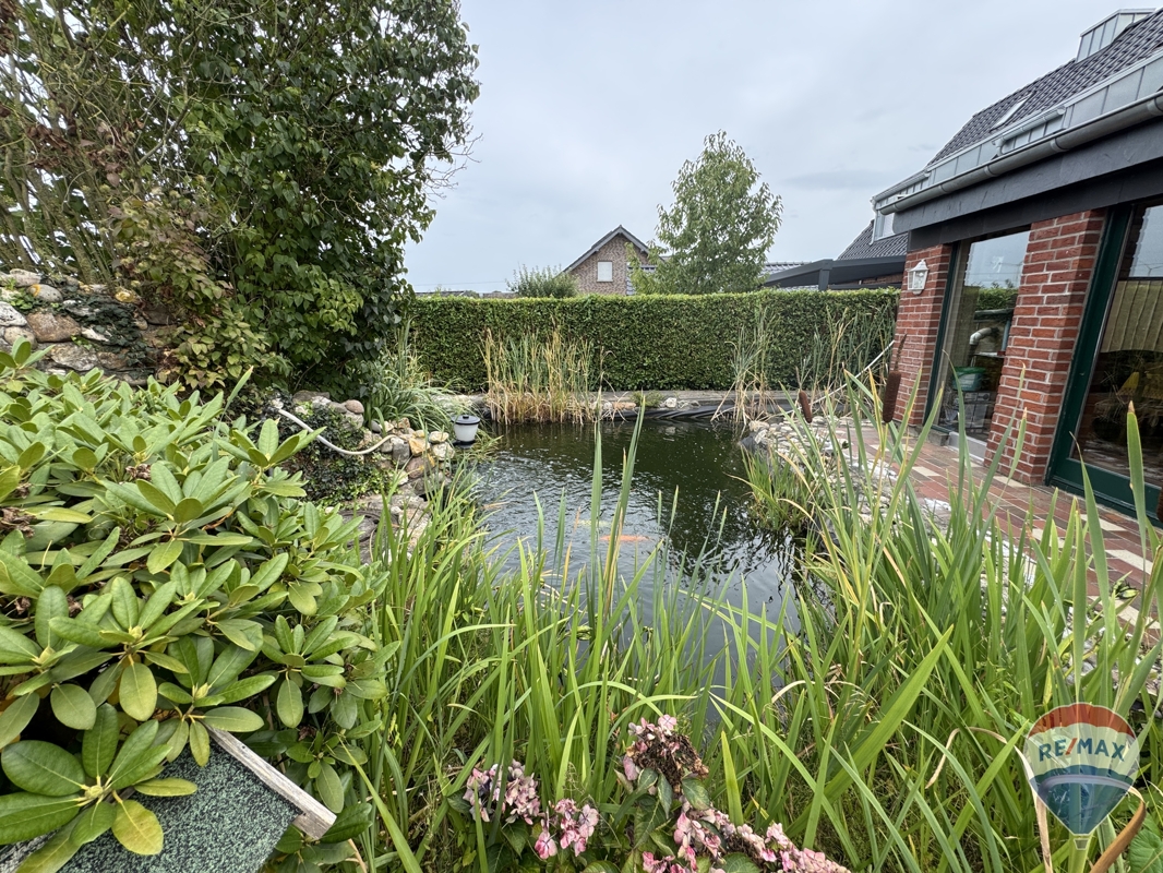 Der gepflegte Garten ist ein weiterer Höhepunkt dieser Immobilie und lädt mit einer idyllischen Teichanlage zum Verweilen ein. Ihre Freizeit können Sie auch auf der sonnigen Terrasse des Hauses genießen.